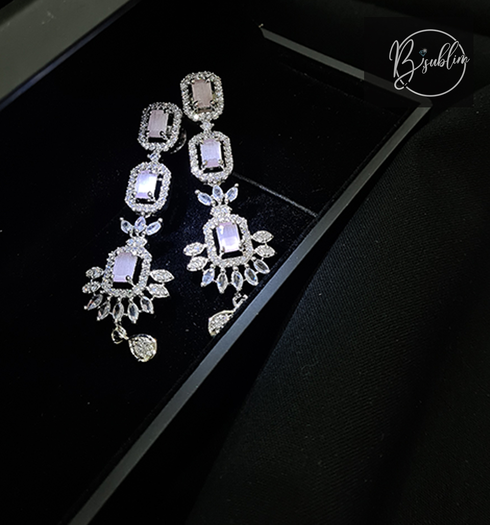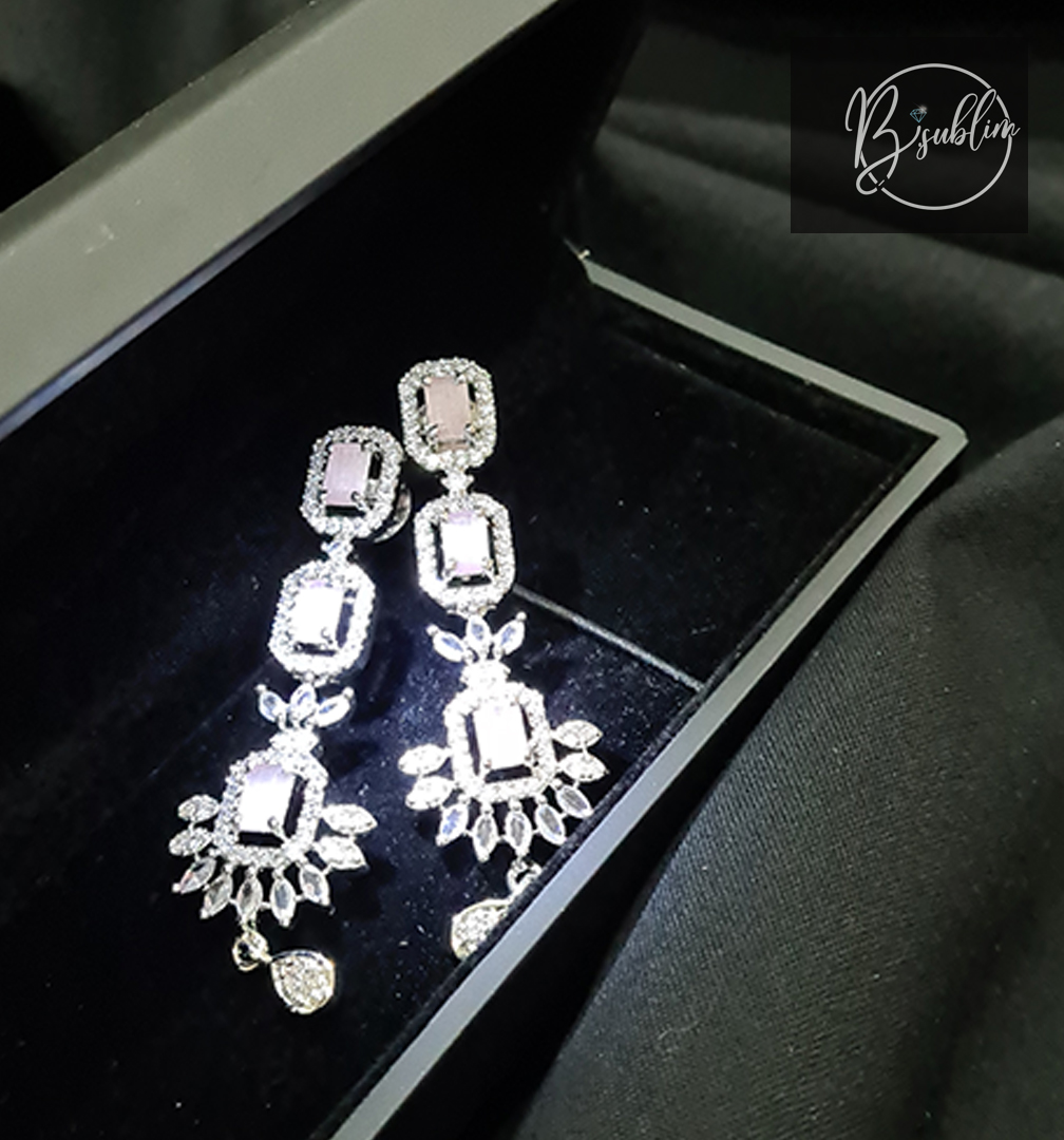 Fancy Earring – (Silver White with white stone)